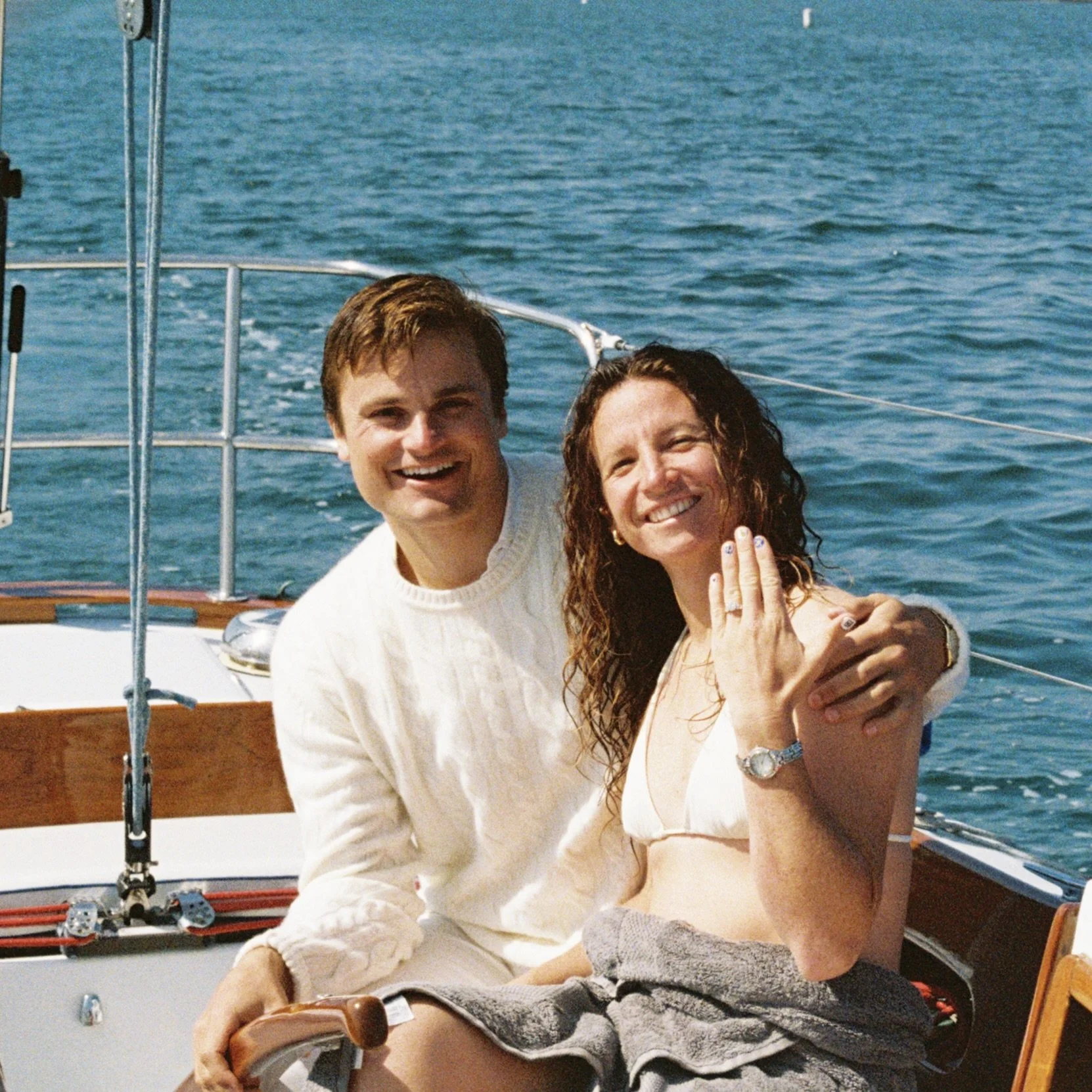 Post service, it was an absolutely stunning morning - no wind, blue skies, and gentle swell. Elizabeth was napping in the cockpit and Archer suggested a picture. She said, “let’s do it laying down.” He said, “nice try!” They posed at the stern with Trey pointing the camera. Elizabeth reached her hand innocently towards Archer’s back pocket. He took it in his. A gentle wave rocked the boat. As Elizabeth regained her balance, Archer was on his knee with a red velvet box opened.
